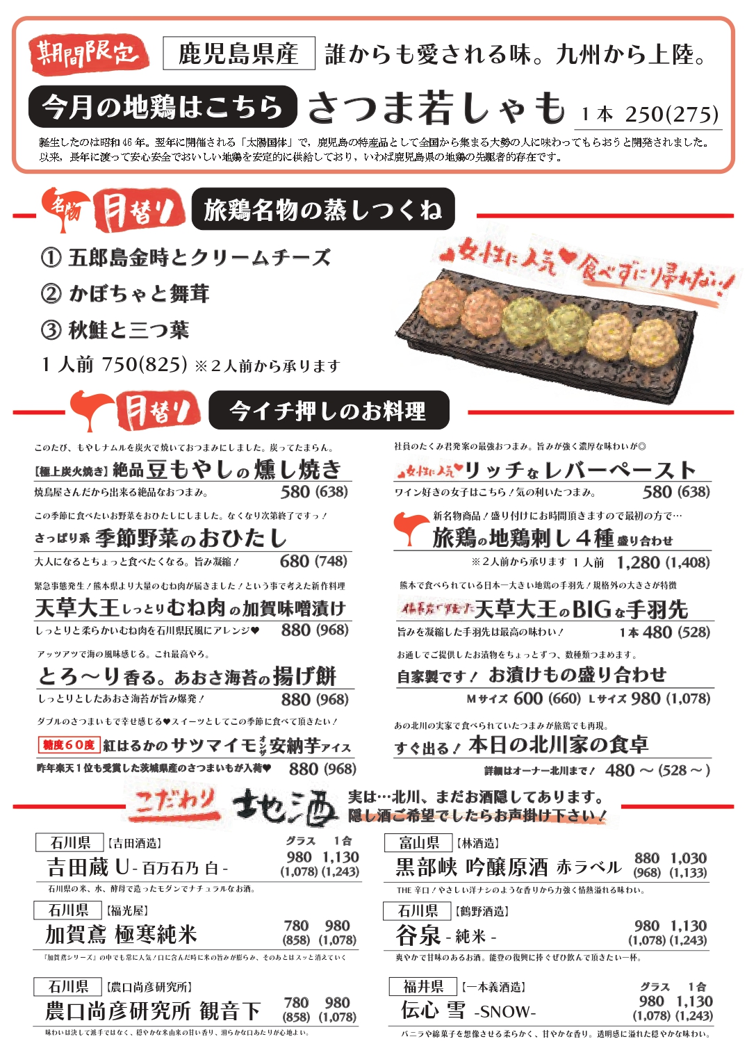 日替わりで旬の北陸の地酒をご用意しております。